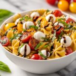 A refreshing and easy-to-make Caprese Pasta Salad combining tender farfalle pasta with juicy cherry tomatoes, creamy mozzarella pearls, and fragrant fresh basil, finished with a drizzle of olive oil and balsamic glaze. Perfect for a light lunch or as a side dish for any meal.