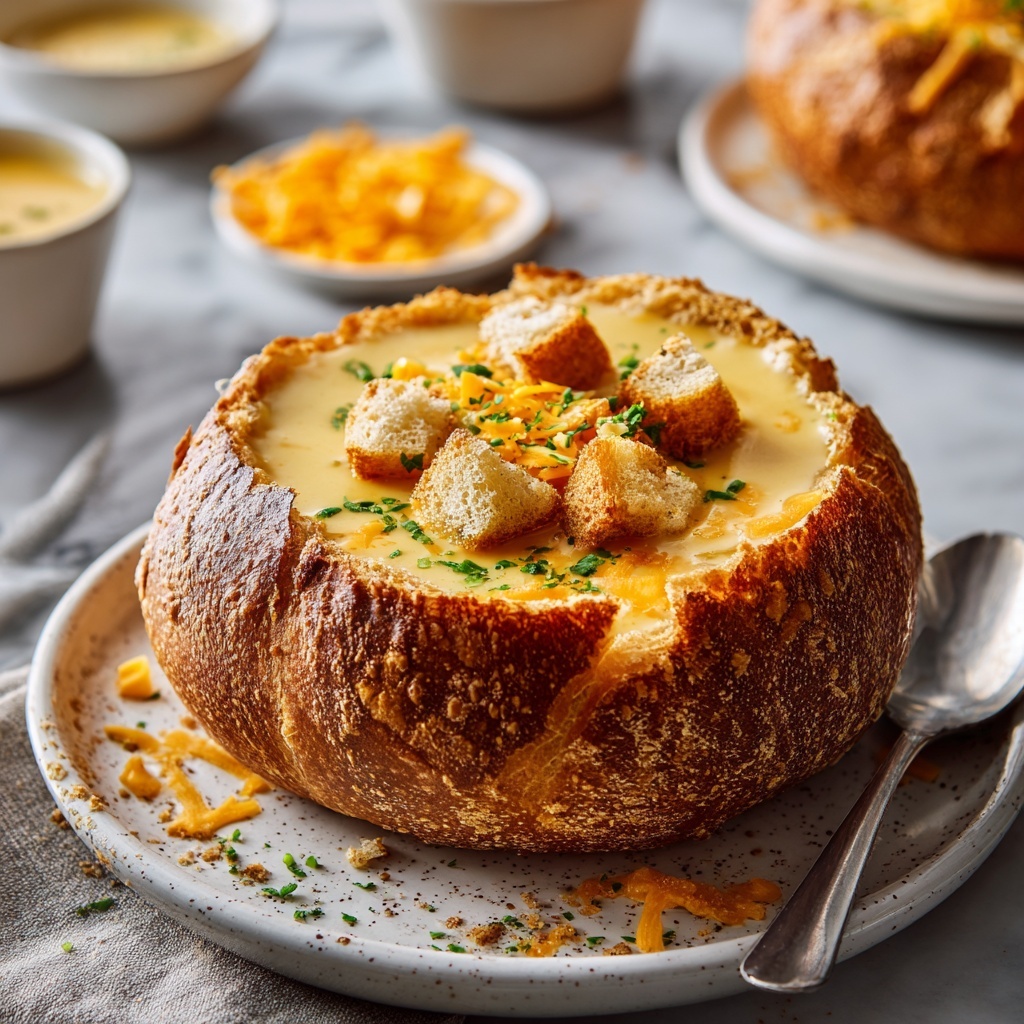 Reheat the soup gently over low heat on the stove, stirring occasionally to keep it smooth and prevent scorching. If it thickens too much, add a splash of milk or broth to loosen it up. Warm your bread bowls in the oven just before serving to revive their crispness.