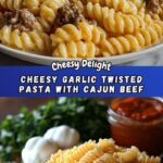 Cheesy Garlic Twisted Pasta with Cajun Ground Beef Recipe