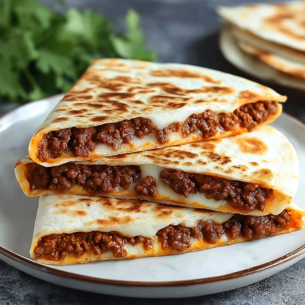 These Cheesy Ground Beef Quesadillas are a delicious and easy-to-make meal perfect for weeknight dinners or casual gatherings. Packed with seasoned ground beef, a blend of cheddar and Monterey Jack cheeses, and folded inside warm flour tortillas, they offer a crispy, gooey bite everyone will love. The quesadillas are cooked on the stovetop until golden and crispy, making them a comforting and satisfying dish ready in just 30 minutes.