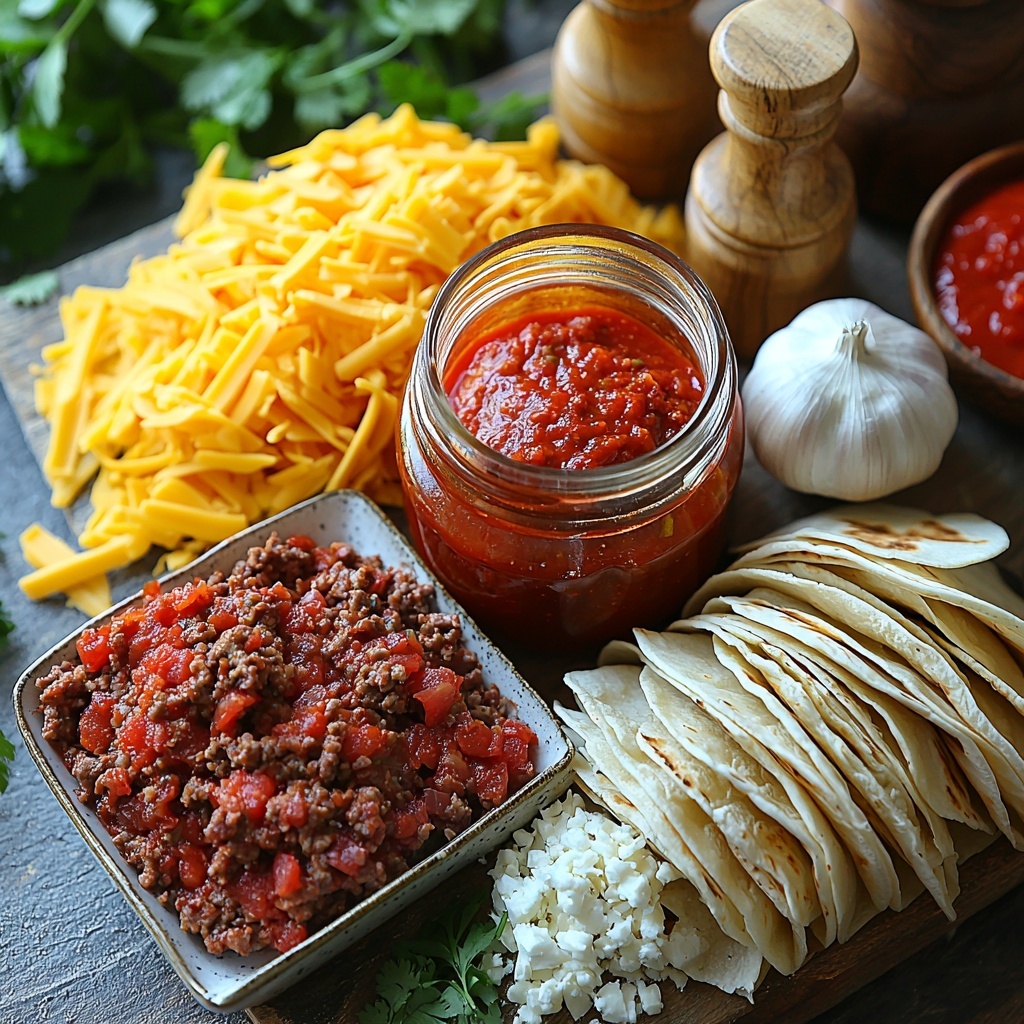 Simple, fresh ingredients come together beautifully in this recipe. Each item plays a crucial role: spices bring warmth and depth, cheeses add creamy gooeyness, and the tortillas provide that golden, satisfying crunch. Let’s look at the essentials that make this dish so irresistibly delicious.