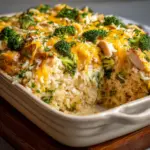 This Chicken Broccoli Rice Casserole is a comforting and hearty American classic that combines tender shredded chicken, fluffy rice, and vibrant steamed broccoli in a creamy, cheesy sauce. Topped with a buttery, crispy cracker crust and baked until golden and bubbly, it’s the perfect easy family dinner that satisfies every time.