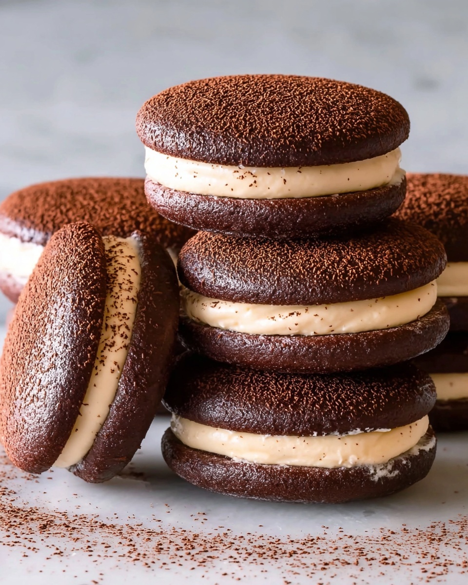 For an elegant touch, dust extra cocoa powder lightly over your whoopie pies just before serving. You can also sprinkle with finely grated dark chocolate or add a few coffee beans on top for visual appeal. The garnishes not only enhance the look but add a delightful contrast to each bite.