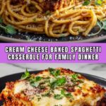 This Cream Cheese Spaghetti Casserole is a comforting, cheesy baked pasta dish featuring tender spaghetti coated in a creamy blend of cream cheese, sour cream, and Parmesan, layered with savory ground beef marinara sauce and topped with bubbling mozzarella cheese. Perfect as a hearty family dinner, this casserole combines rich flavors and satisfying textures baked to golden perfection.