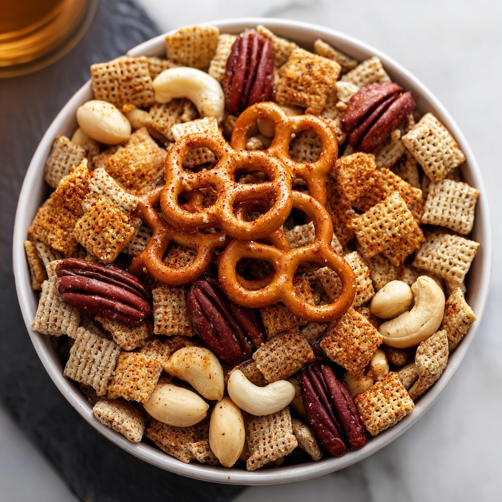 This snack mix is perfect alongside a cold beer or your favorite cocktail, making it a hit for casual get-togethers. It also pairs surprisingly well with creamy dips like ranch or blue cheese for an added layer of indulgence.