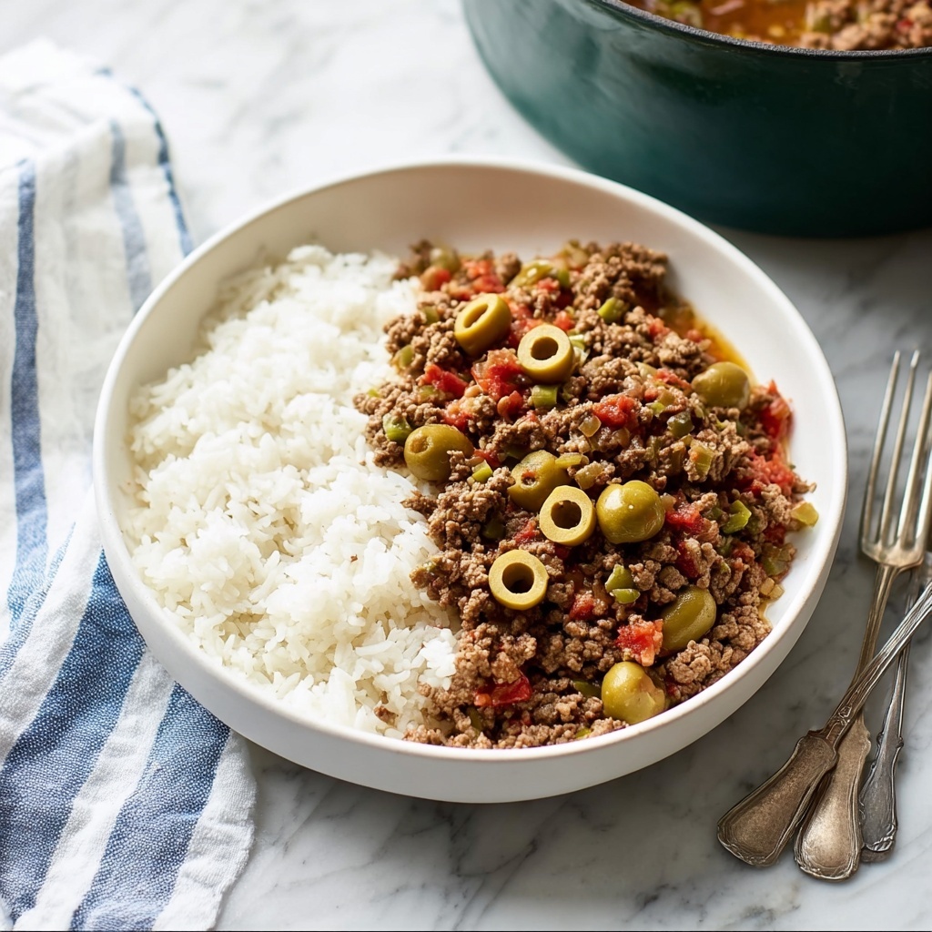 Serve your picadillo with classic white rice to absorb the rich sauce. For extra texture and freshness, a crisp green salad or fried plantains work beautifully. These sides bring complementary flavors and balance, perfect for a full Cuban-inspired meal.