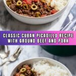 Cuban Picadillo is a classic Cuban comfort food made with a savory combination of ground beef and pork, simmered with green peppers, onions, aromatic spices, tomatoes, raisins, and green olives. This hearty, sweet and tangy dish is perfect served over fluffy white rice and captures the vibrant flavors of Cuban cuisine for a satisfying and flavorful meal.
