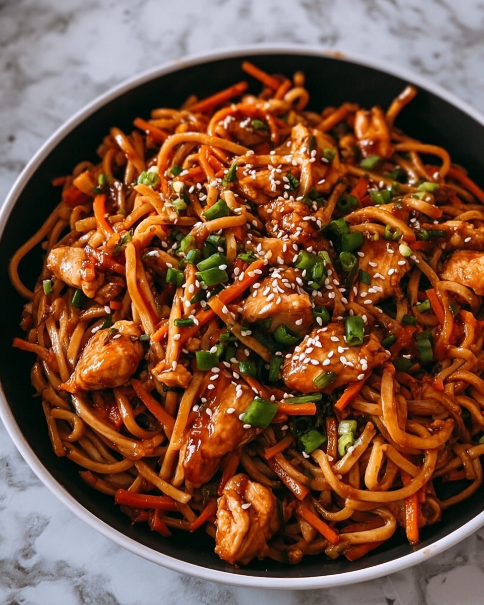 For reheating, warm your Chicken Lo Mein gently in a skillet over medium heat with a splash of water or broth to rehydrate the noodles and revive the sauce. Avoid microwaving directly without moisture to keep noodles from drying out.