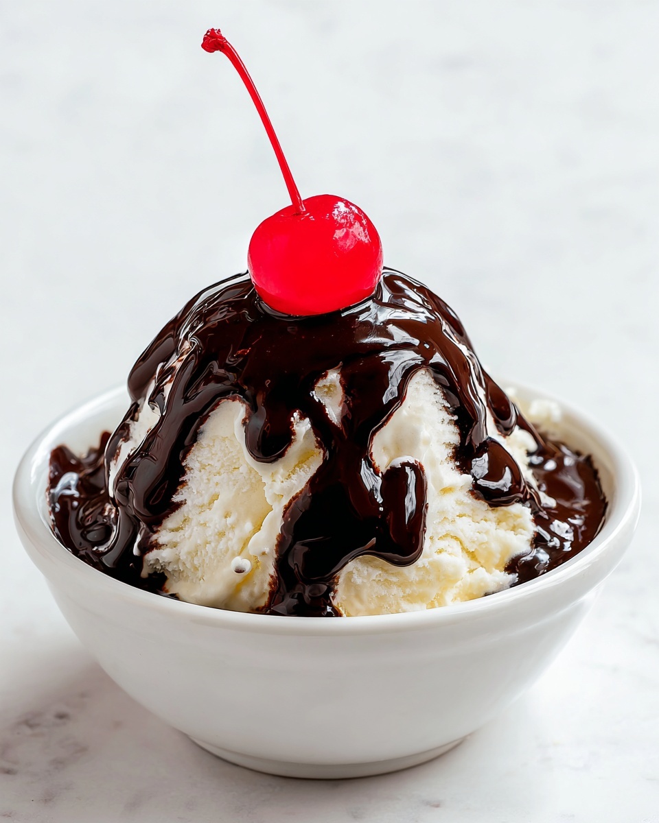 Allow your Easy Hot Fudge Sauce Recipe to cool slightly before serving. Whether you prefer it warm or just at room temperature, it’s perfect for pouring over all your favorite sweets.