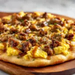 This English Muffin Breakfast Pizza combines the convenience of toasted English muffins with a savory mix of scrambled eggs, breakfast sausage or bacon, and melted cheddar and mozzarella cheeses. Finished with fresh bell peppers and green onions, it’s a quick, delicious, and kid-friendly breakfast option that’s perfect for busy mornings or weekend brunches.