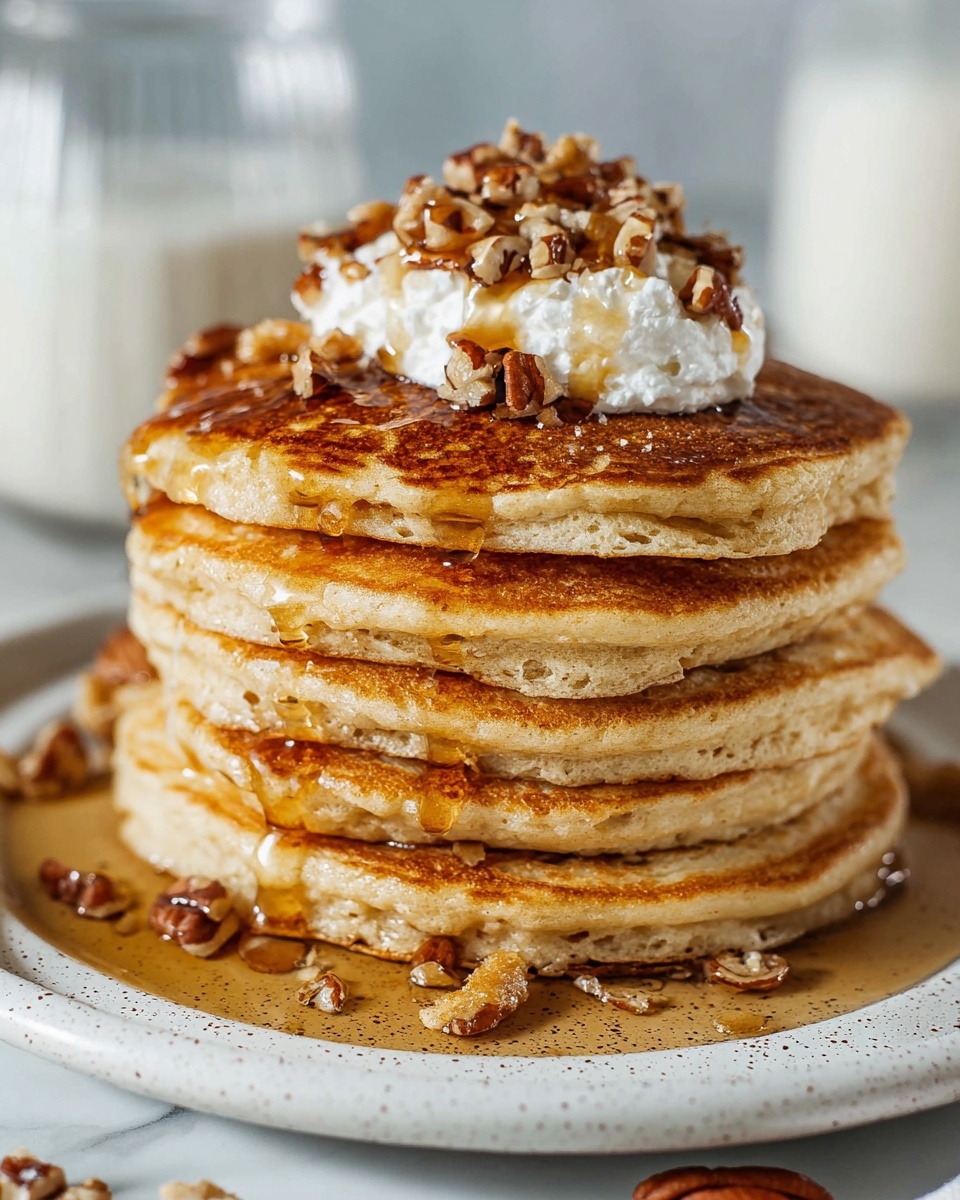Nothing complements this Fluffy Pumpkin Pancakes Recipe like a variety of garnishes that add bursts of flavor and texture. Think maple syrup dripping slowly over the stack, a sprinkle of chopped toasted pecans for crunch, or a dollop of whipped coconut cream for luscious softness. A light dusting of cinnamon sugar or a handful of fresh cranberries can add an extra layer of festive charm.