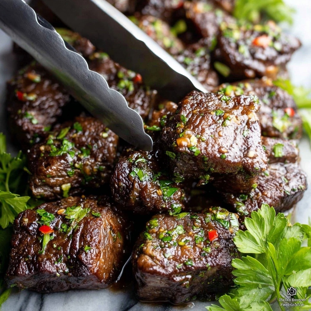 - Serve: Transfer the garlic butter steak bites to a serving platter and garnish with freshly chopped flat-leaf parsley. Serve immediately while hot and juicy.