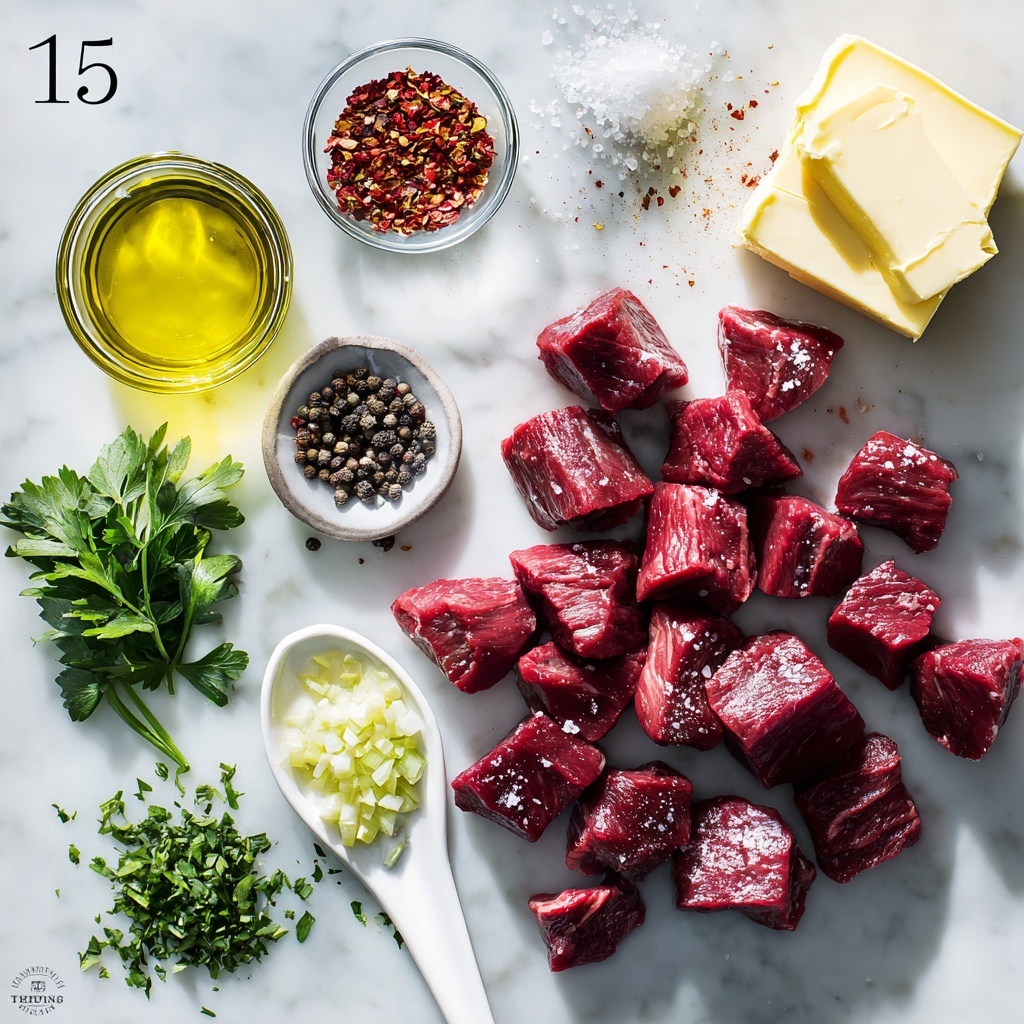 Sprinkle finely chopped fresh parsley over the steak bites just before serving. The parsley’s bright green color adds an inviting vibrancy and its fresh, herbaceous flavor balances the richness perfectly.