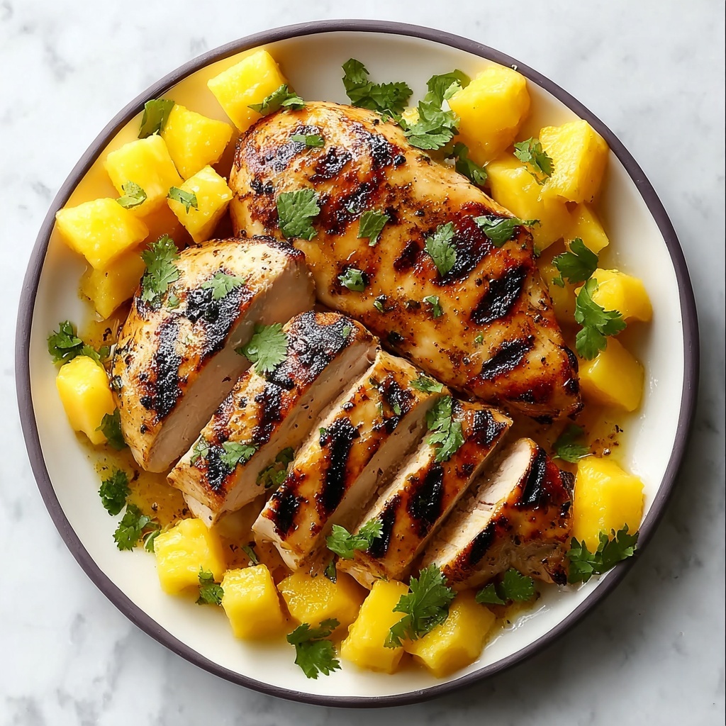 While the chicken grills, peel and dice your ripe mango into small, bite-sized cubes. In a medium bowl, toss the mango with olive oil, honey, lime juice, and fresh chopped cilantro. This fresh fruit salsa balances sweetness, tanginess, and herbaceous notes, ready to complement the grilled chicken perfectly.