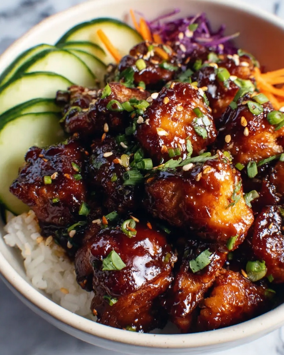 While the bowl comes loaded with veggies and rice, serving it alongside steamed greens like bok choy or sautéed snap peas enhances the meal’s freshness. A crisp cabbage slaw provides a vibrant, crunchy complement that pairs well with the spicy-sweet chicken. For a fun twist, add a side of pickled vegetables to deliver a vinegary brightness that balances the glaze perfectly.