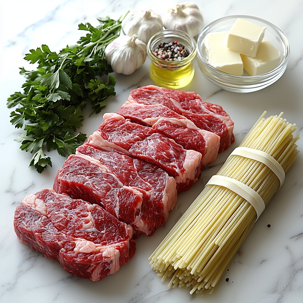 This recipe shines because of its straightforward, quality ingredients. Every component plays its part, whether that’s the rich, flavorful beef, the aromatic garlic, or the creamy butter sauce that ties it all together. Let’s take a look at what you’ll need to bring this dish to life in your kitchen: