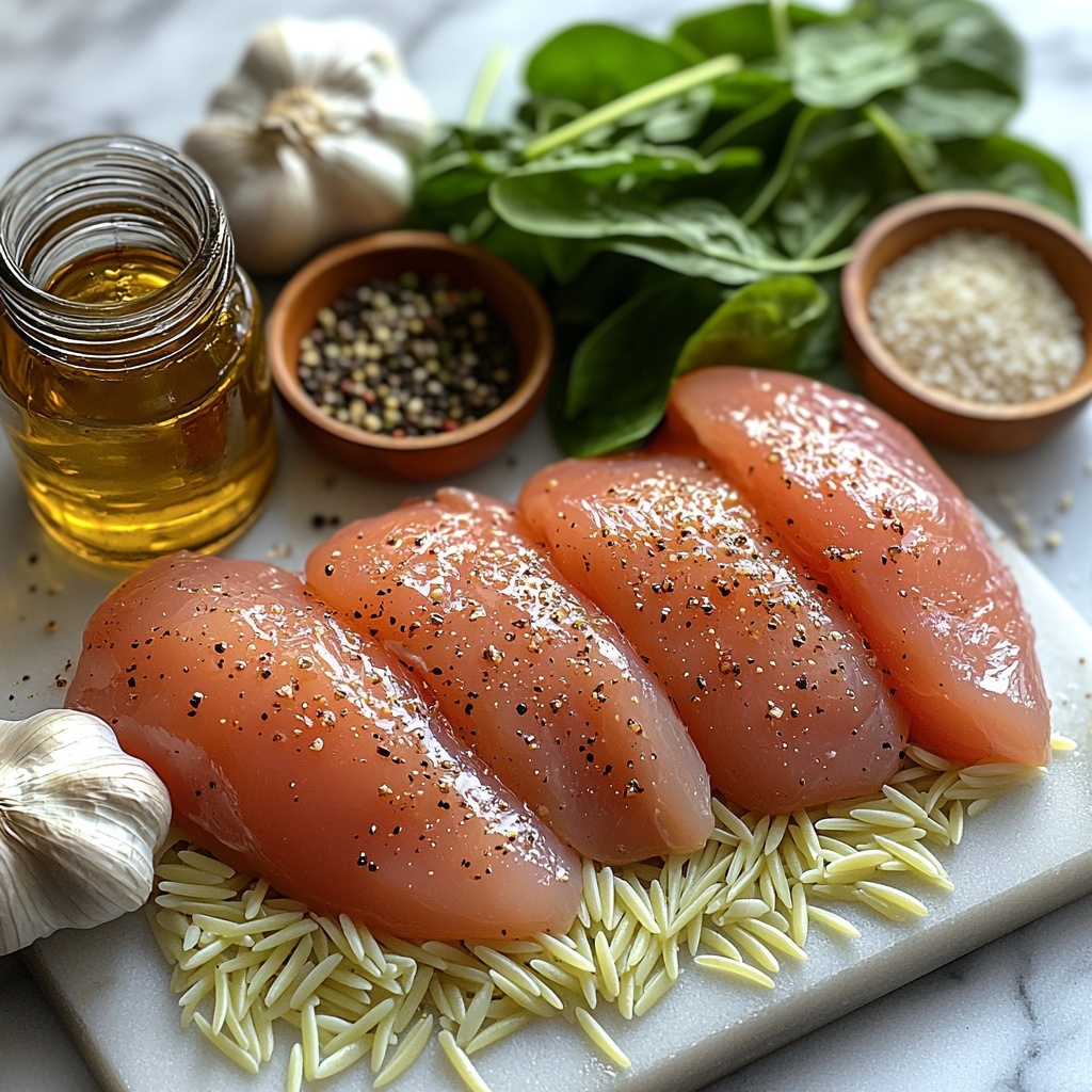 The magic of this Marsala Chicken Orzo Recipe comes down to a handful of uncomplicated, fresh ingredients, each playing its part to create gorgeous layers of flavor and texture. From the tender chicken breasts to the sweet tang in the Marsala apple vinegar and the fresh touch of spinach, every item is chosen to complement and elevate the dish.