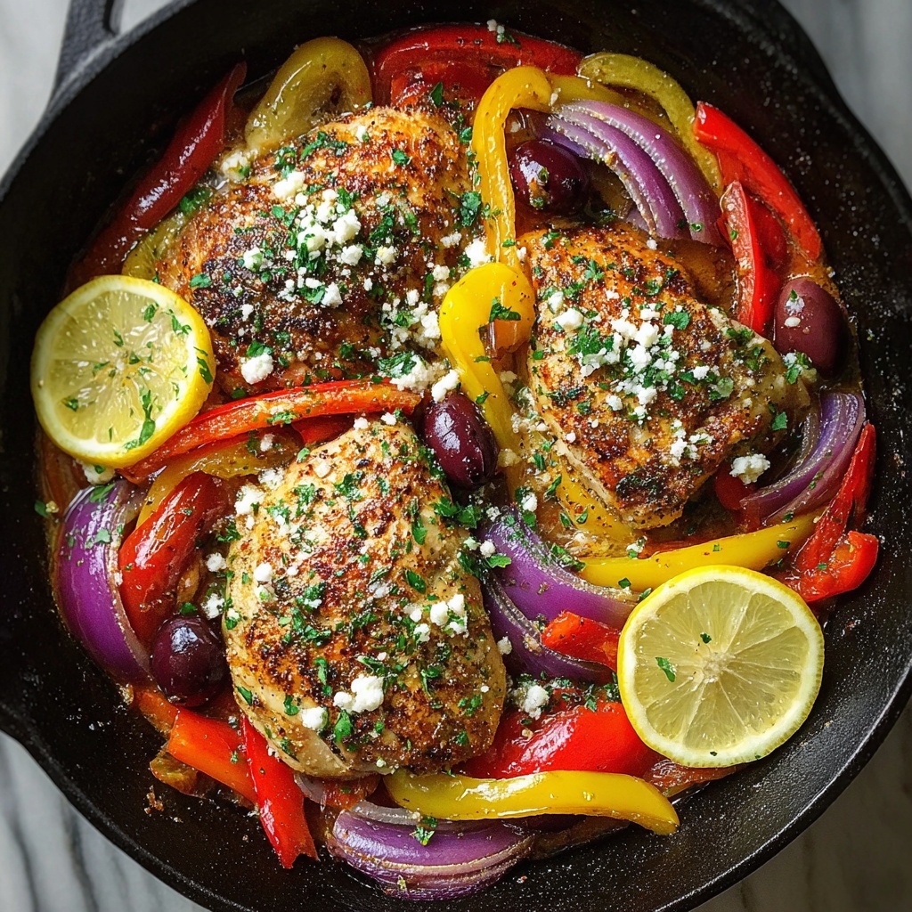 The beauty of this Mediterranean Chicken Skillet Recipe lies in its straightforward, wholesome ingredients. Each component plays a crucial role — from the tender chicken breasts providing hearty protein, to the vibrant bell peppers lending sweetness and crunch, and the robust olives and feta that offer signature Mediterranean flair.