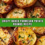 Mini Baked Parmesan Potato Rounds feature thinly sliced Yukon gold potatoes coated with olive oil and seasoned with garlic powder, paprika, salt, and pepper, then topped with grated Parmesan cheese and baked to golden perfection. Crispy on the edges and tender inside, these bite-sized potato rounds make a delicious and easy side dish or appetizer with an optional fresh parsley garnish for added color and flavor.