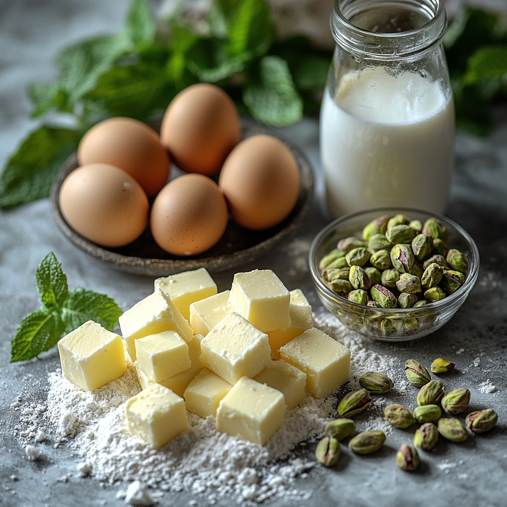 • Pistachios (1 cup, unsalted, roasted): The star ingredient, providing a nutty depth and luscious texture in the custard filling.