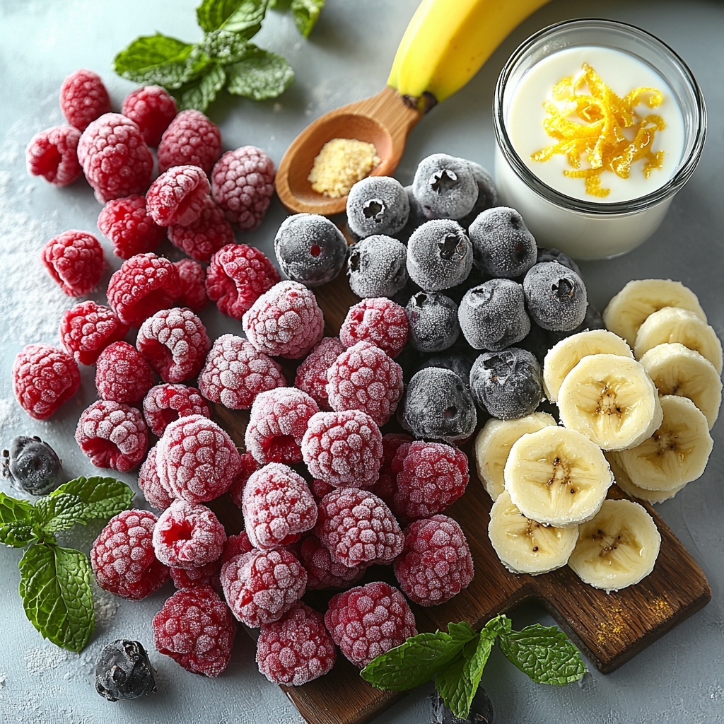Start by thawing the frozen mixed berries for about five minutes to make blending smoother. Then, chop your banana into 1-inch chunks. Having everything prepped means you’re ready for a quick blend with zero fuss.