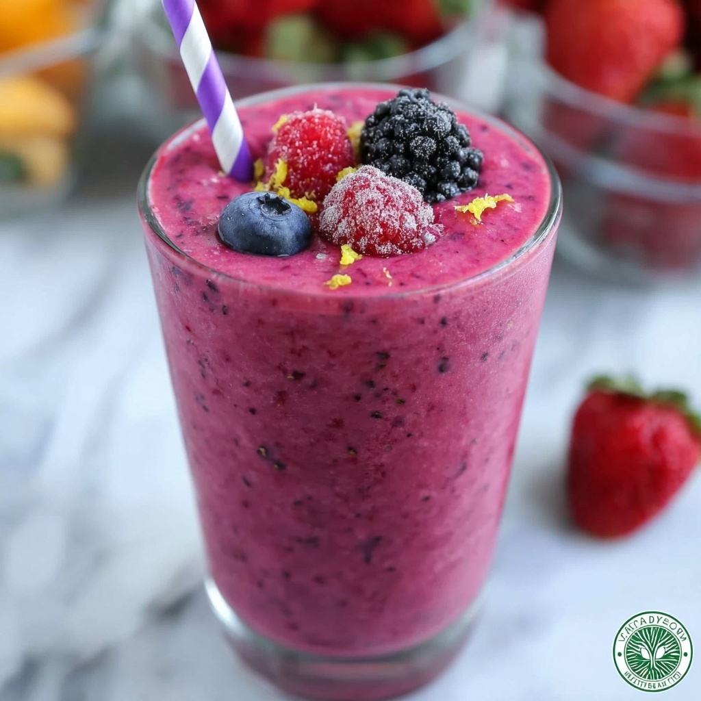 - Serve: Pour the smoothie into glasses and garnish with fresh berries and extra lemon zest if preferred. Serve immediately for best flavor and texture.