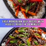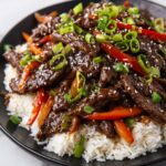 A flavorful and quick Mongolian Beef recipe featuring tender flank steak coated in cornstarch, stir-fried with crisp vegetables, and coated in a sweet and savory brown sugar-soy sauce. Perfect for a weeknight dinner served over rice.