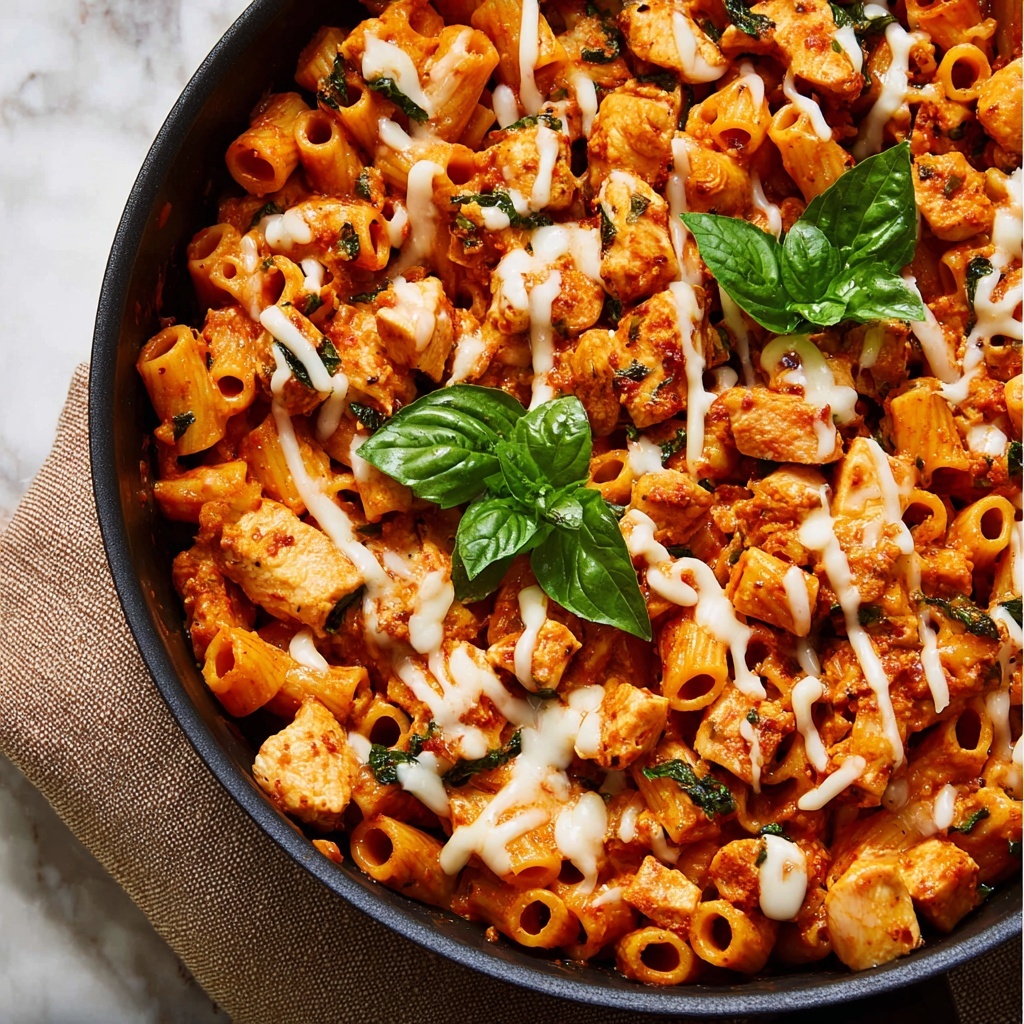 This One Pan Chicken Parmesan Pasta is a quick and delicious Italian-inspired dish combining tender chicken, rigatoni pasta, marinara sauce, and melted cheese all cooked together in a single skillet. Perfect for a hearty weeknight dinner with minimal cleanup.