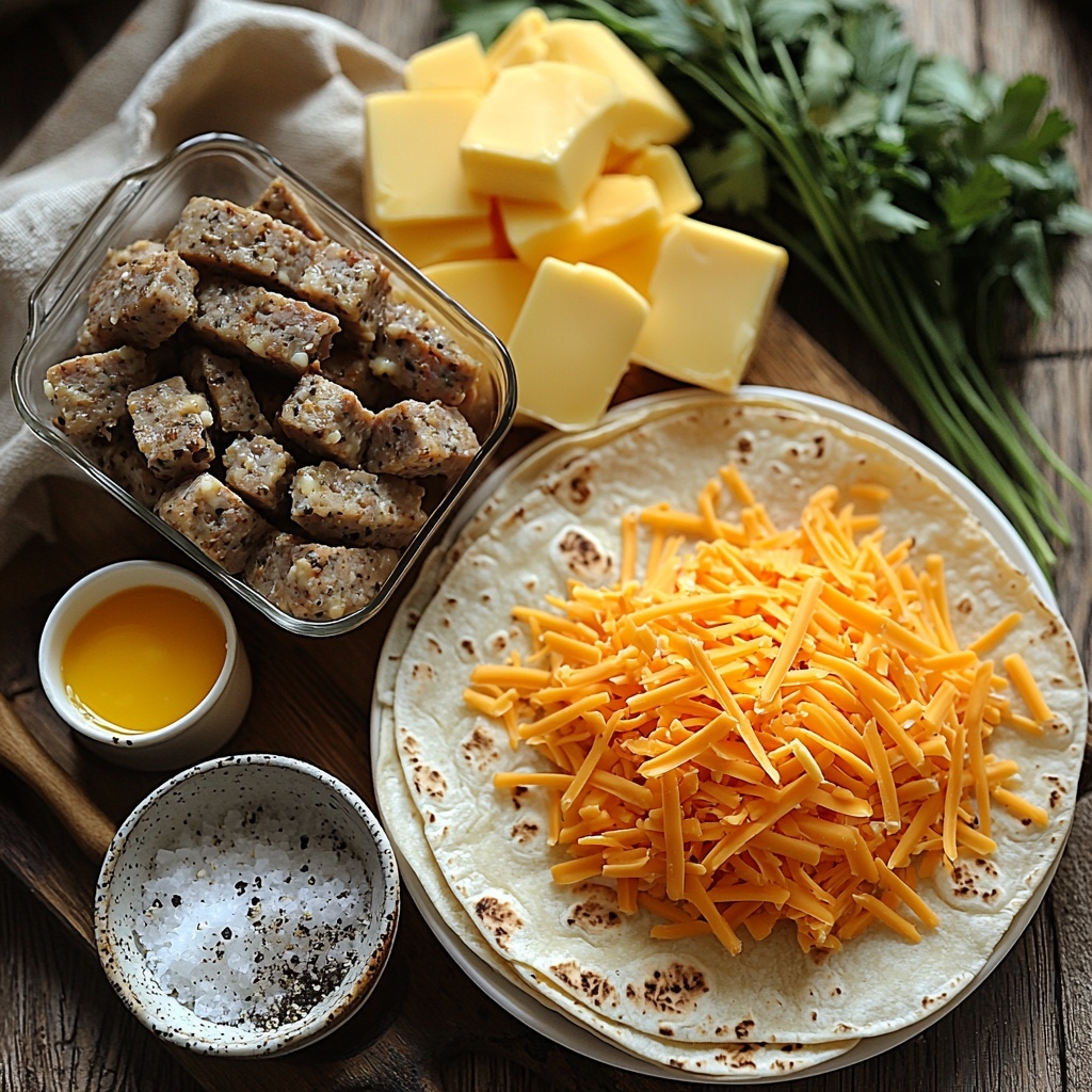 Simple, straightforward ingredients come together to create an irresistible breakfast masterpiece. Each component plays a key role: the sausage adds a hearty, savory punch; eggs provide a creamy, soft base; cheese brings gooey richness; and tortillas offer the perfect wrap to hold it all together with a satisfying softness. Every ingredient is essential to building layers of flavor and texture.