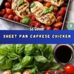 This Sheet Pan Caprese Chicken Dinner offers a quick, flavorful, and healthy meal by roasting tender chicken breasts with juicy cherry tomatoes, fresh mozzarella, and aromatic basil. Finished with a drizzle of balsamic glaze, it’s an easy one-pan recipe bursting with Italian-inspired flavors perfect for a weeknight dinner.