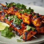 - Serve Hot: Once cooked through and nicely charred, remove skewers from heat. Garnish with chopped cilantro and lime wedges before serving.