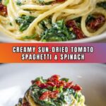 A creamy and flavorful spaghetti dish featuring sun-dried tomatoes and fresh spinach in a rich Parmesan-infused cream sauce. This Italian-inspired vegetarian recipe is perfect for a quick and satisfying weeknight dinner.