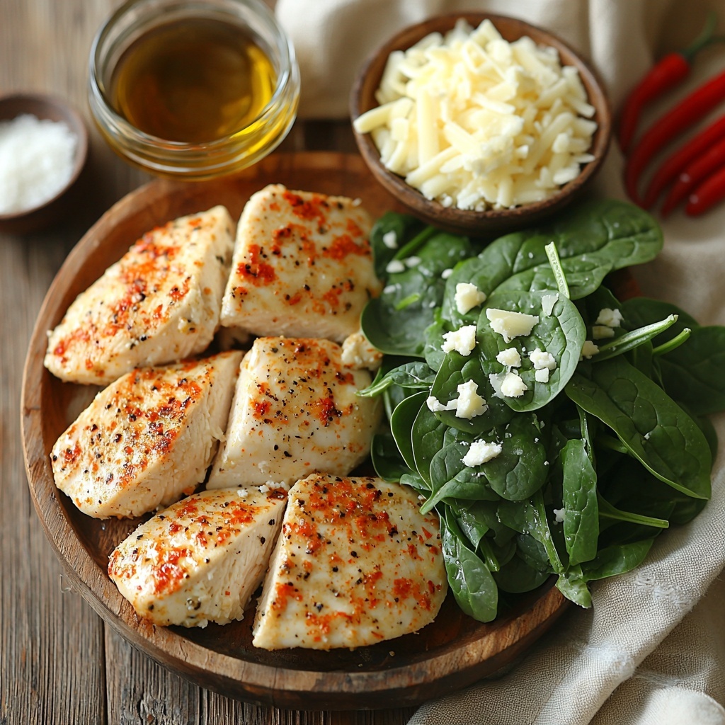 Getting all your ingredients ready is the first step to creating this delicious masterpiece. The list may be short, but each component plays a key role in building the flavor, texture, and vibrant color of the spinach stuffed chicken breasts.