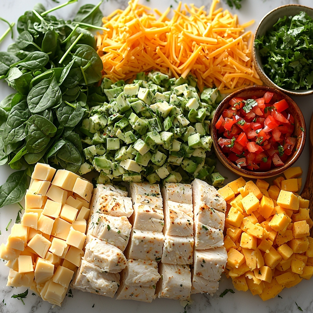 - Mix Filling: In a large bowl, combine the shredded chicken, chopped spinach, softened cream cheese, half of the green salsa, and chopped cilantro. Mix thoroughly until the ingredients are evenly incorporated.