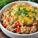 This hearty Stuffed Pepper Casserole combines the classic flavors of stuffed peppers into a comforting and easy-to-make baked dish. Ground beef, bell peppers, tomatoes, and rice meld together with Italian seasonings and melted cheese, making a perfect family-friendly meal that’s ready in under an hour.