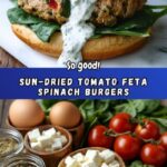 These Sun-Dried Tomato and Feta Spinach Burgers offer a flavorful twist on classic chicken burgers. Infused with sun-dried tomatoes, tangy feta cheese, and nutritious spinach, they are perfectly complemented by a refreshing tzatziki sauce. Quick to prepare and cook in just 25 minutes, these burgers make a delightful, wholesome meal for any occasion.