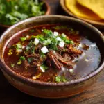 This Traditional Mexican Beef Birria Recipe has a mild to moderate heat level from the dried chiles, focusing more on rich smoky and earthy flavors rather than intense spiciness. If you prefer less heat, remove the seeds carefully or use fewer chiles; add extra chilies if you want a kick.