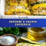 A delicious and easy-to-make Zucchini & Squash Casserole featuring thinly sliced summer squash layered and baked with a crispy Parmesan and gluten-free Panko breadcrumb topping. This comforting casserole is flavored with garlic and fresh parsley, making it a perfect side dish for any meal.